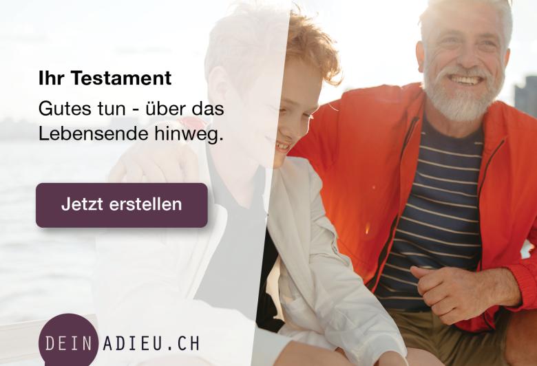 Schweiz - Ihre Unterstützung durch eine Erwähnung in Ihrem Testament ermöglicht es, nach Ihrem Abschied eine bleibende Spur zu hinterlassen! Unser Partner DeinAdieu.ch hilft Ihnen kostenlos dabei.