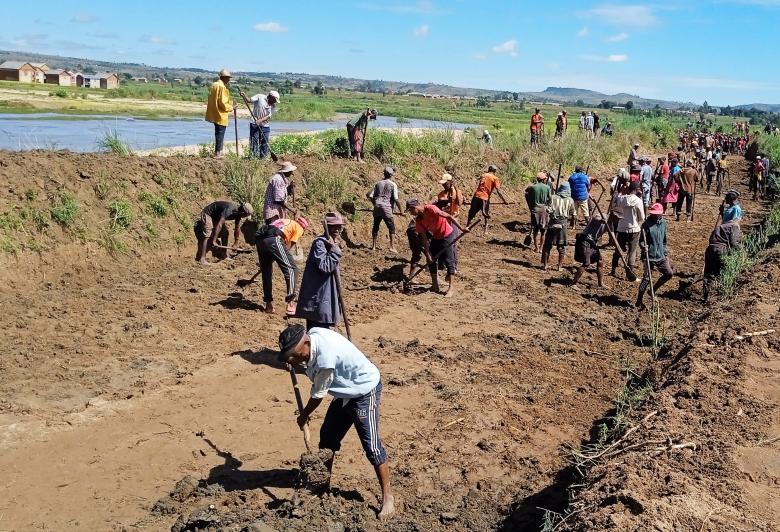 Face à cette situation, la priorité reste la prévention. Nous devons mettre en place des mesures pour atténuer les effets des aléas climatiques. Nous avons ainsi soutenu le renforcement de la digue de Vavaharana sur plus d’un kilomètre. Le cours d’eau ensablé a été curé afin de réduire les risques d’inondation sur plus de 150 hectares de rizières. Il est prochainement prévu de consolider une section supplémentaire de 60 mètres à l’aide de gabions (casiers en fils de fer tressés remplis de pierres). À ces actions se sont ajoutés l’aménagement de fosses d’infiltration et la plantation de 10’400 arbres sur les bassins versants pour stabiliser les sols et limiter l’érosion. Il s’agit d’un travail collectif colossal.
