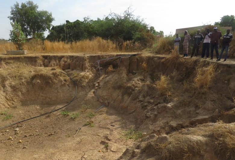 Une fois l’orage passé, ce sont les membres du groupement maraîcher Bokk Dolé qui ont fait la découverte inimaginable : un trou béant d’une dizaine de mètres de profondeur et d’environ vingt mètres de diamètre s’était formé au beau milieu du périmètre maraîcher. Le puits et tout le système d’irrigation avaient disparu, engloutis. Les cris et les lamentations ont aussitôt attiré tout le village. Stupéfaits, les habitant.e.s ont découvert l’ampleur du désastre.